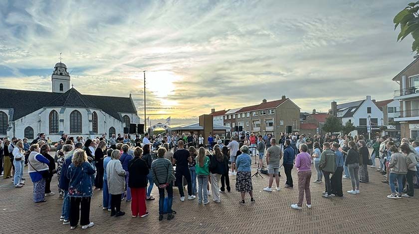 Paaspraise op Andreasplein in Katwijk tijdens koopavond