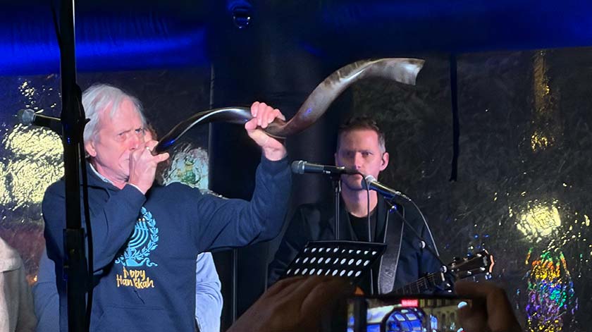 De sjofar, een blaasinstrument gemaakt van een ramshoorn, neemt een bijzondere plaats in binnen het jodendom. Het blazen op de sjofar is geen muzikaal ritueel, maar een handeling met een diepe religieuze en symbolische betekenis die teruggaat tot de oudste Bijbelse tijden. Het geluid van de sjofar wordt gezien als een directe oproep aan de mens om stil te staan bij zijn daden, zijn leven te onderzoeken en zich opnieuw te richten op God. Tijdens de manifestatie werd de Sjofar verschillende keren geblazen.