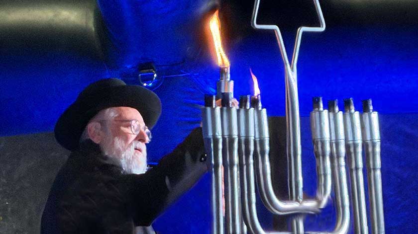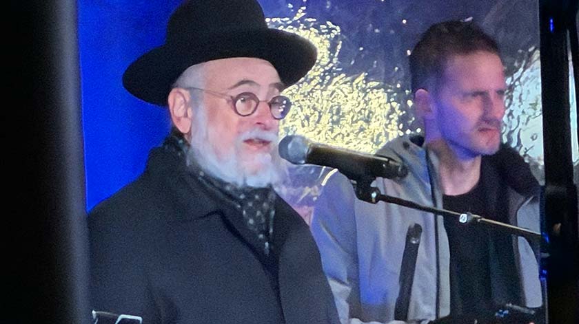 Opperrabbijn Binyomin Jacobs was ook op het podium en sprak over het licht dat wij mogen zijn. “Het is fijn dat u allemaal gekomen bent, een grote bemoedigen voor ons Joden, maar ik hoop dat u als u weer thuis bent in uw eigen omgeving en vriendenkring ook dit duidelijke geluid laat horen en opkomt voor ons land en ons volk.” Hij stak na zijn toespraak vier kaarsen aan van de chanoeka.