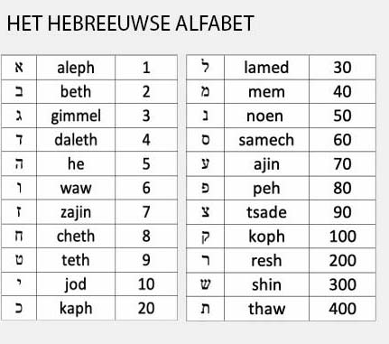 Het Hebreeuwse alfabet heeft 22 letters en elke letter in het Hebreeuws heeft een naam en is ook een getal. Er zijn in de Bijbel een aantal hoofdstukken, waarvan de eerste letters van de verzen samen het Hebreeuwse alfabet vormen. Omdat je dat door de vertaling in het Nederlands niet meer kunt zien, hebben verschillende vertalingen bij de tekst in deze hoofdstukken de namen van de letters gezet: aleph, beth, gimmel…