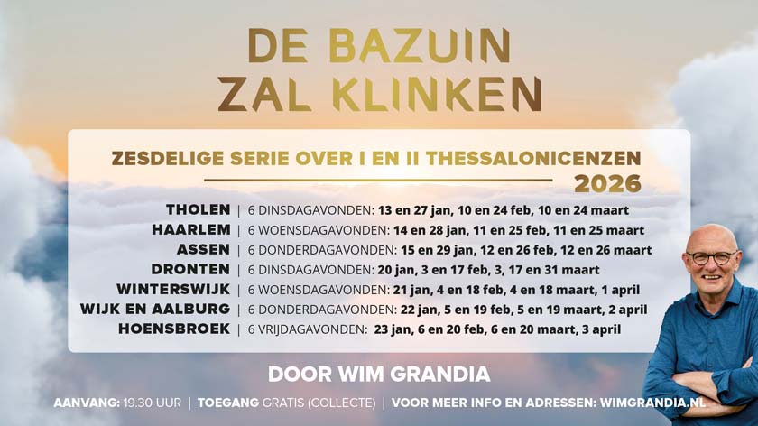 Wij zijn niet onderweg naar een ‘doomsday’, maar naar een ‘dag van bevrijding’! Voor ons als gemeente van Christus betekent dit dat we – voordat Gods toorn over deze aarde komt – eerst zullen worden opgenomen om voor altijd bij Christus te zijn. Gods profetische klok vertelt ons dat dit wel zeer aanstaande moet zijn. Ik wil daarom deze nieuwsmail afsluiten met een gedeelte uit Romeinen 13:12-14, in de versie van de BasisBijbel.
