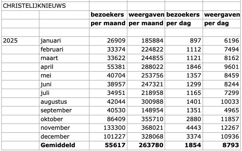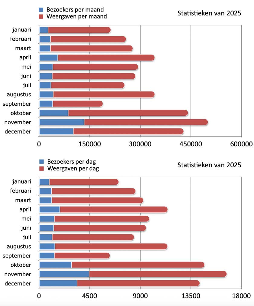 Een overzicht van de bezoekers en weergaven in 2025