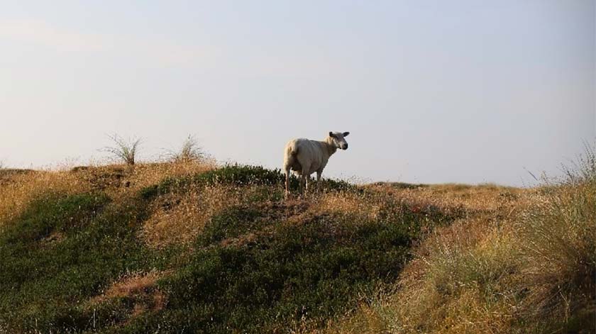 Het was nog vrij verlaten en we kwamen in de duinen heel wat schapen tegen, die heel tevreden en zelfverzekerd leken! Je kon zien: ze waren daar thuis en de herder komt kennelijk regelmatig kijken hoe het met ze gaat.